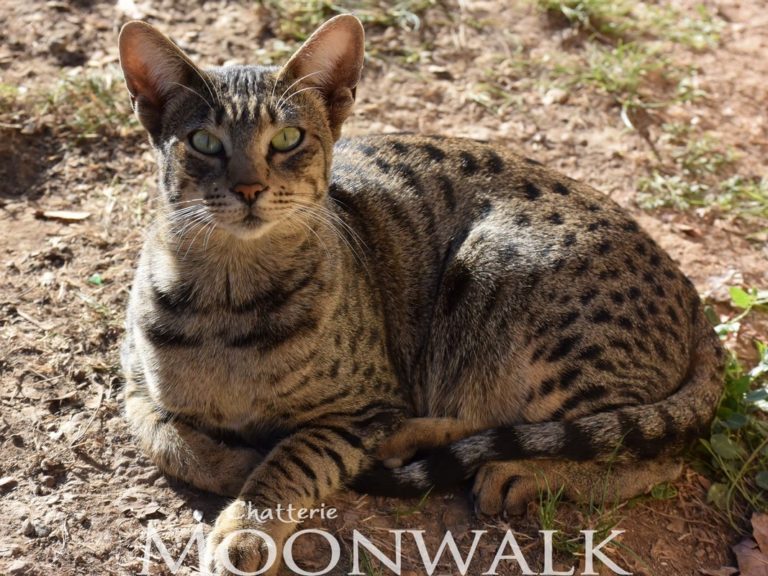 Nasha est issue de ma lignée de géants. (Lignée de Moonwalk Honacha) Grace à un travail de longue haleine. Il nous a fallu 15 ans de selection pour réussir l’exploit de faire naître d'aussi grands Savannahs en génération domestique. Certains mâles de cette lignée dépasse les 12 kg! Les chatons de Nascha sont grands et puissants tout en étant domestique .