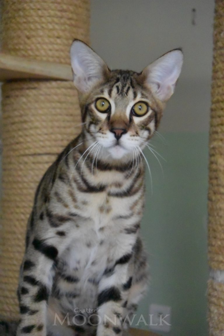 Nous sommes fiers d’accueillir Ichi Ban à la Chatterie Moonwalk. Elle est la fille d’une femelle F1 qui a hérité de toutes les caractéristiques de son père, un serval. Nous…