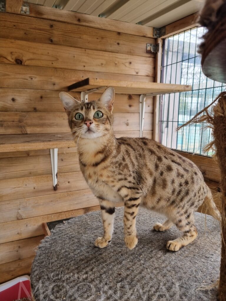 ATTENTION RECHERCHE CAPACITAIRE ANIMAUX NON DOMESTIQUES SPÉCIFIQUE SAVANNAH La chatterie Moonwalk propose à l’adoption une magnifique et rare femelle Savannah F3 de 2021, non stérilisée. Sabana est issue de notre…
