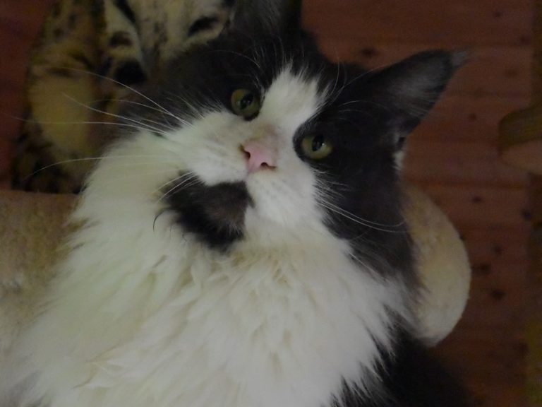 Les parents de Paso doble sont :Femelle maine coon Bleue smoke et blanc arlequin