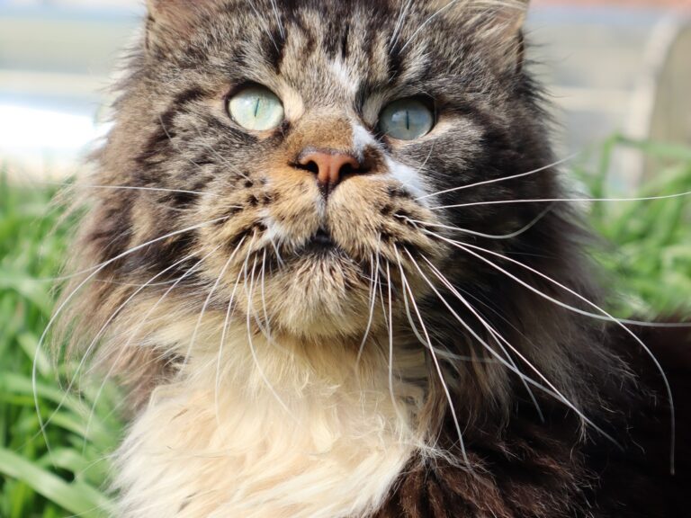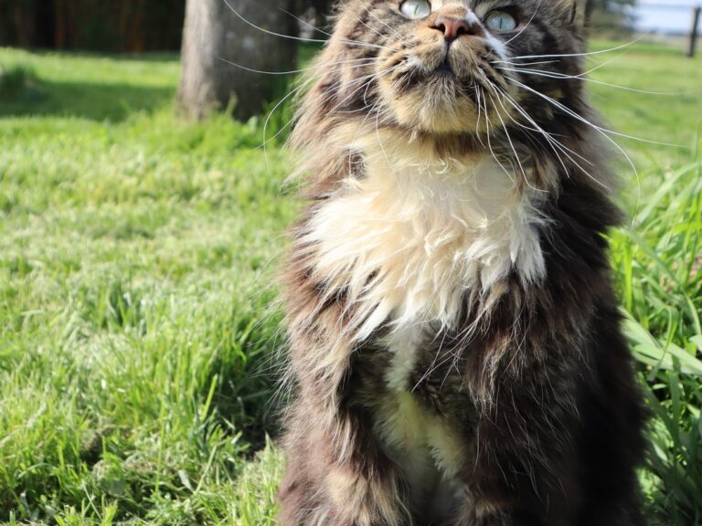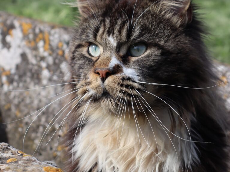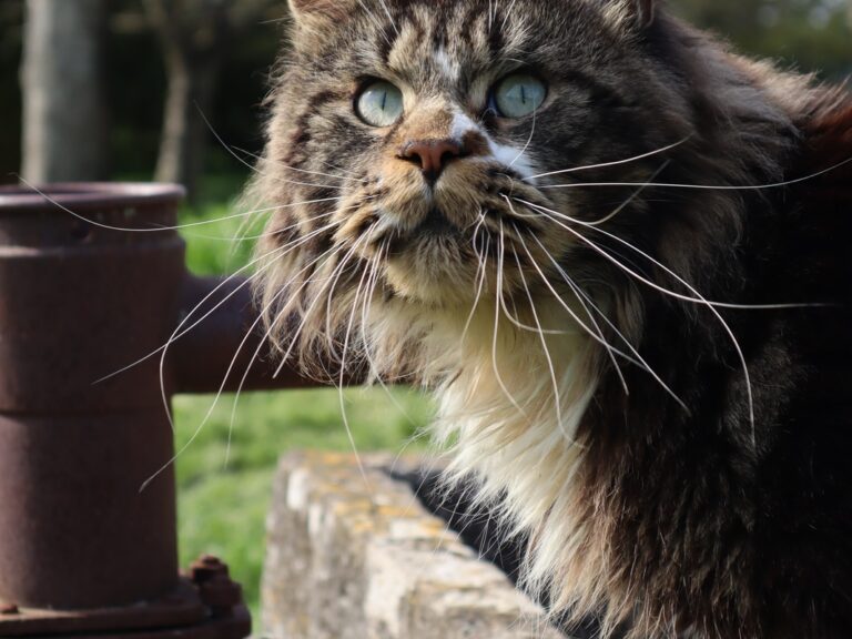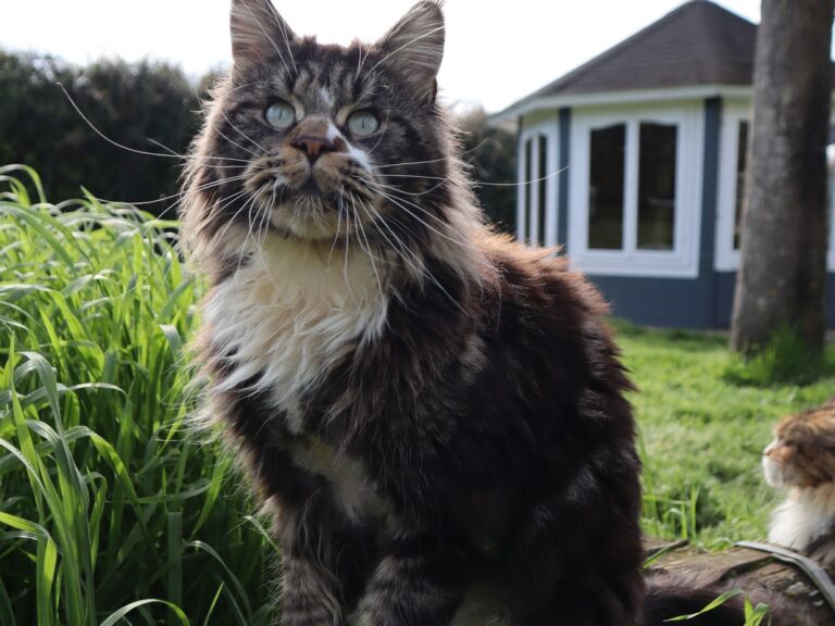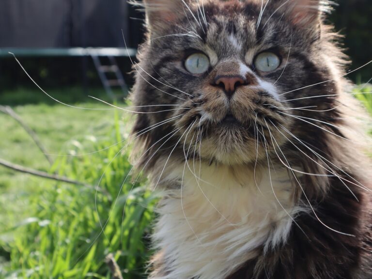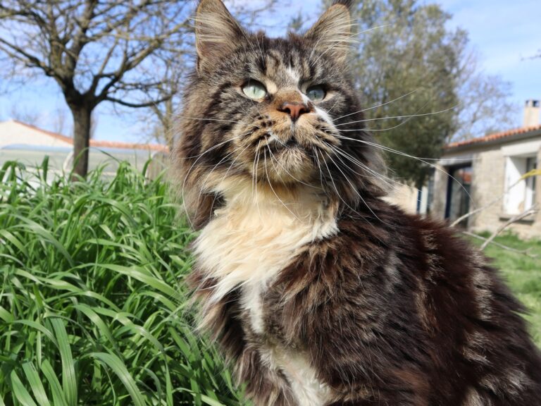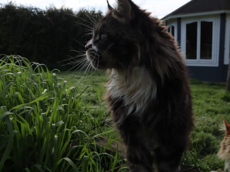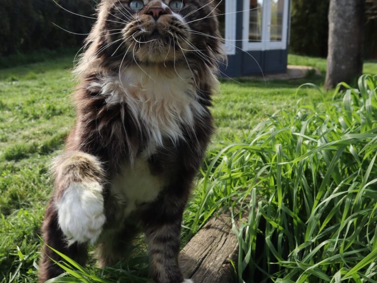 Nous sommes fiers de notre jeune Thym Beez qui a hérité du type incroyable de ses parents: le majestueux Apollo et l'exceptionnelle Mamy Blue. Il a un très bon gabarit, il est haut, long, osseux et ne demande qu'à s'épaissir encore. Il a une bouille incomparable, on craque complétement pour ce grand ours au cœur tendre qui adore patrouiller dans le jardin avec ses dames. Un grand merci à la chatterie Ogador pour ce beau partage de génétique.