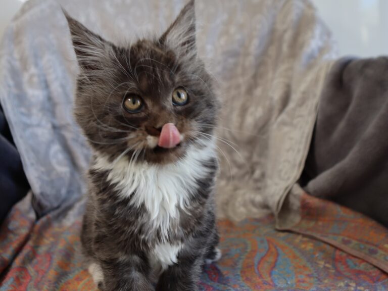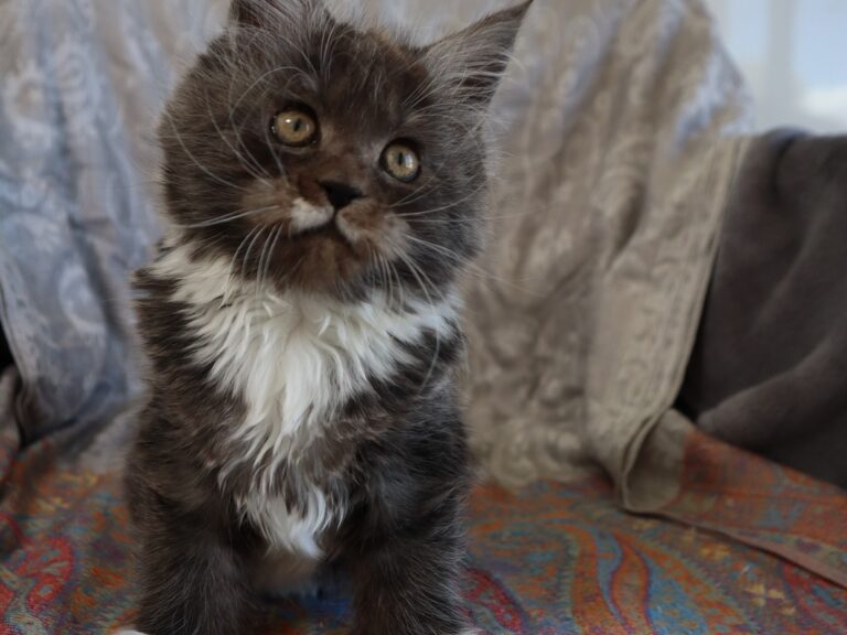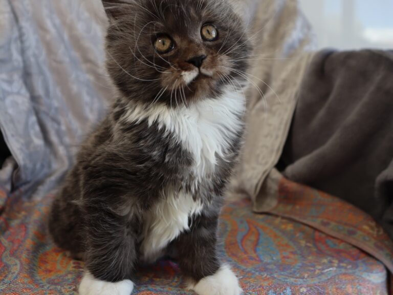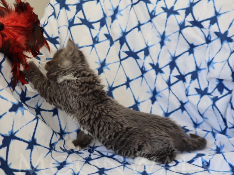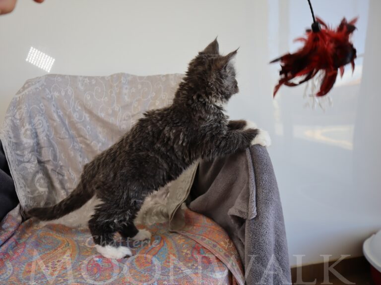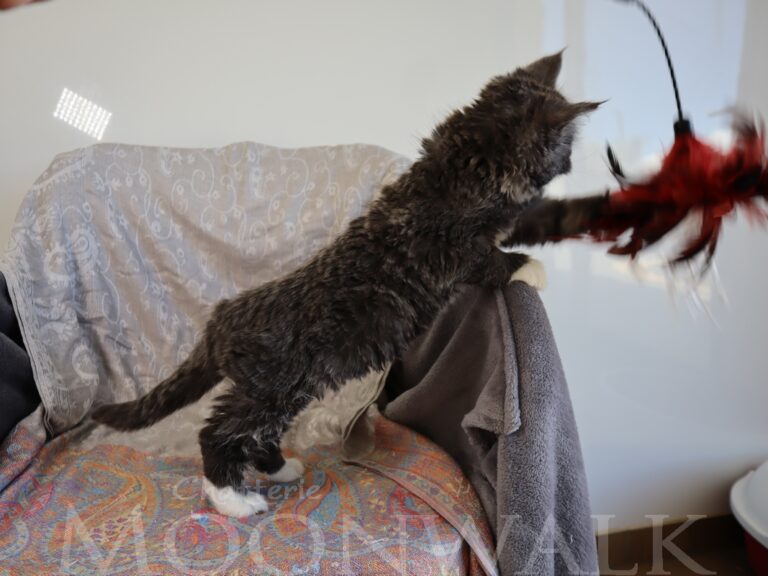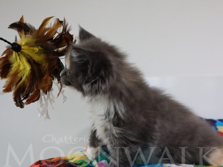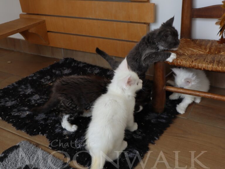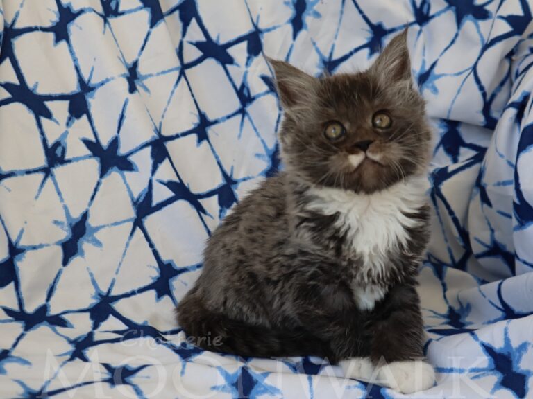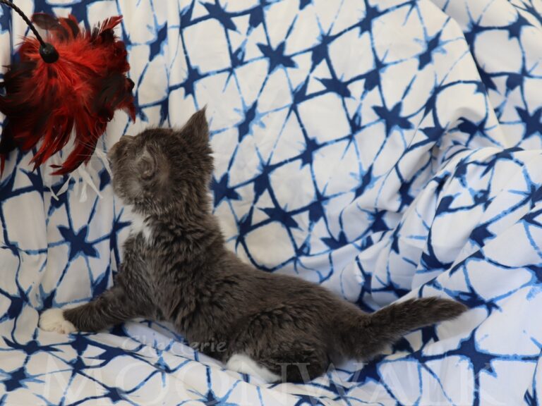 Vaïana est une petite guerrière comme sa sœur et ses frères. Ils sont nés par césarienne en urgence avec quelques jours de prématurité. Tamtam n'ayant pas de lait nous avons biberonné presque 1 mois avant que notre douce Prada les adopte. Ils ont tous hérités du type bien carré de leurs parents et d'un caractère adorable.