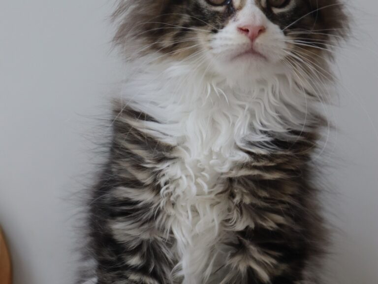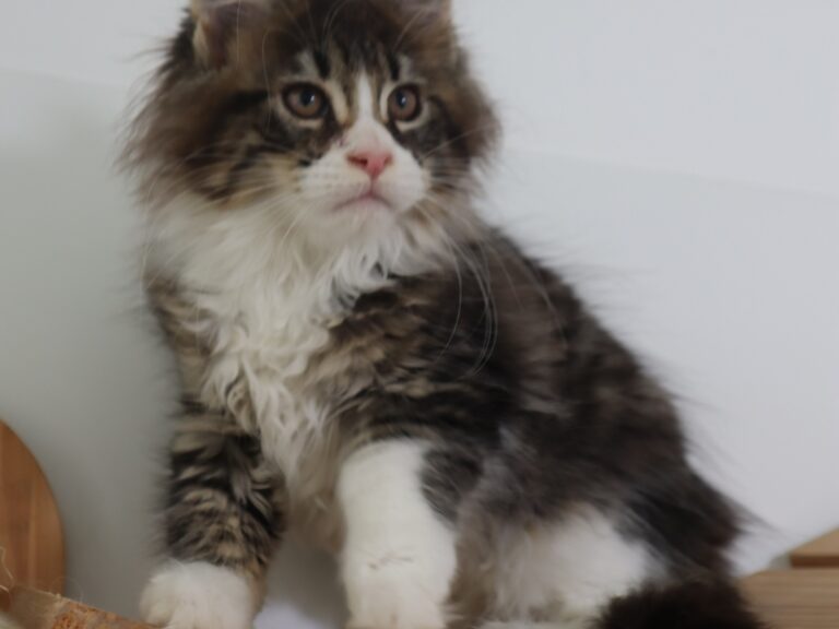 Femelle maine coon Brown mackerel tabby et blanc