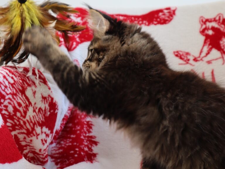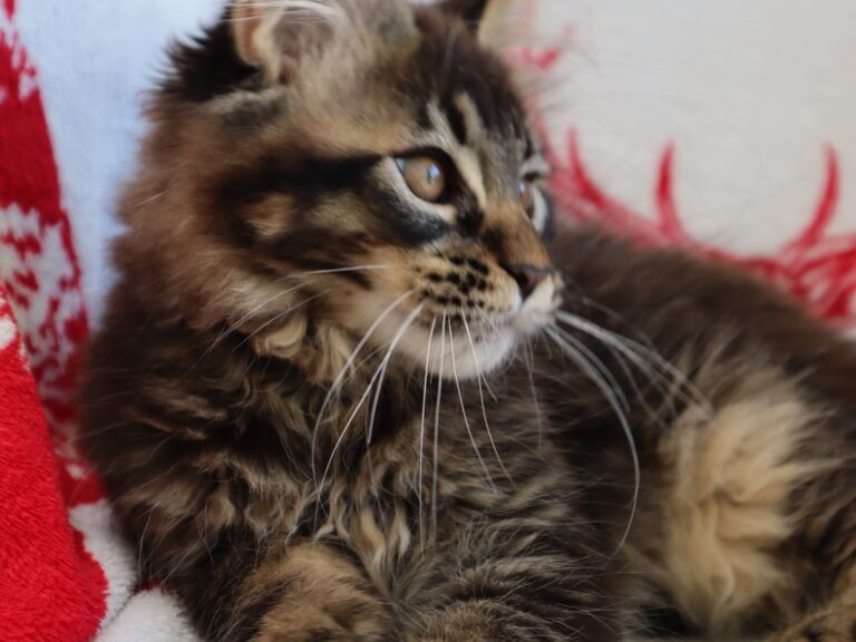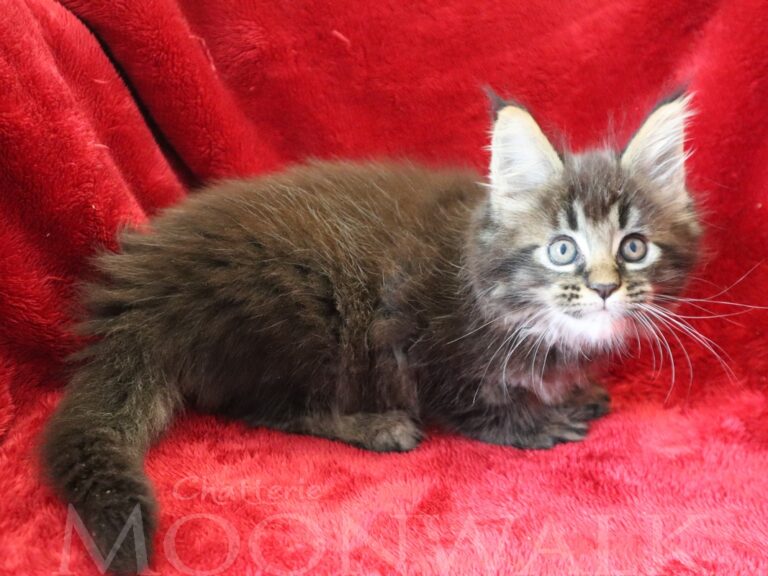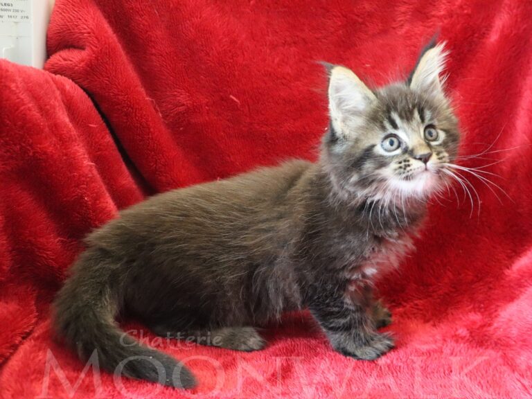 Verdi est un très beau chaton de notre Taxi Girl. Un bon gabarit avec une ossature plutôt épaisse. Le caractère se dessine doucement. Il est plutôt observateur et joueur pour le moment.