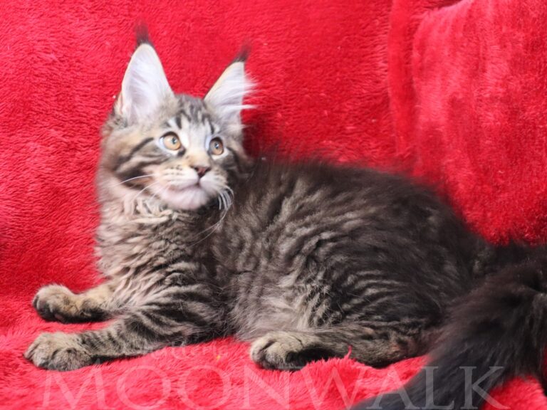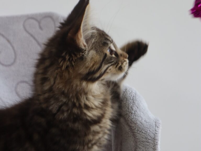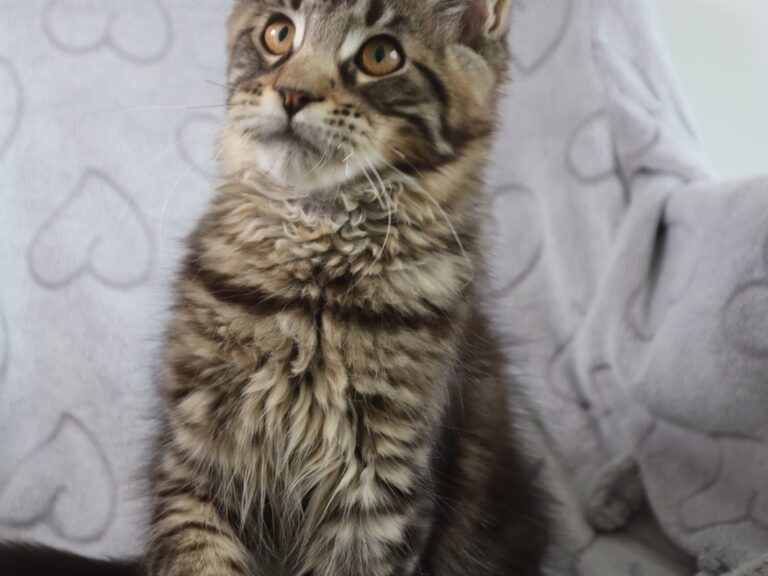 Vico est un très beau chaton avec un super gabarit et une ossature puissante. Il a hérité de la belle boite de son papa Thym Beez et d'une robe mackerel sympa comme sa maman Tchikita. Longues oreilles et lynx tips sont au rendez vous !