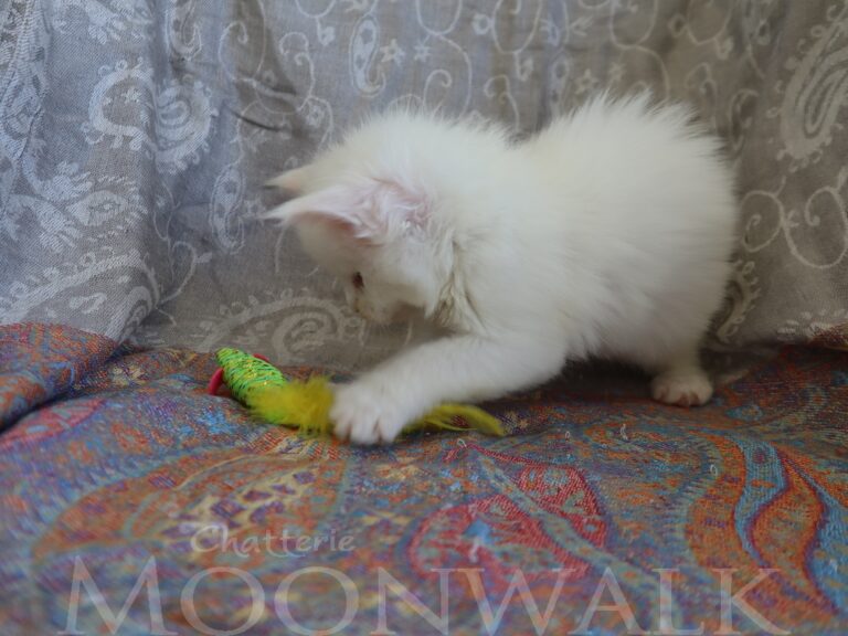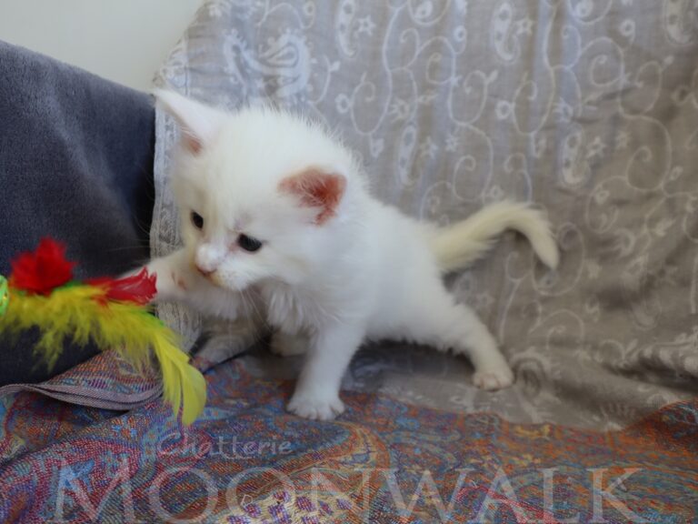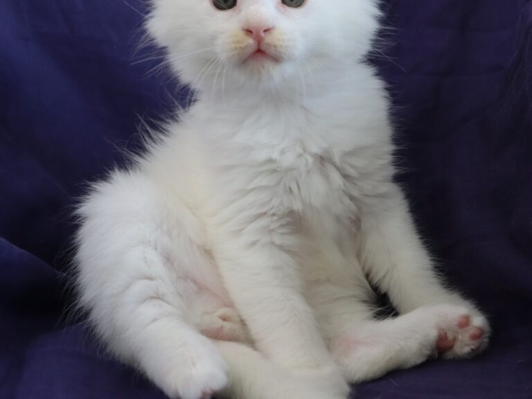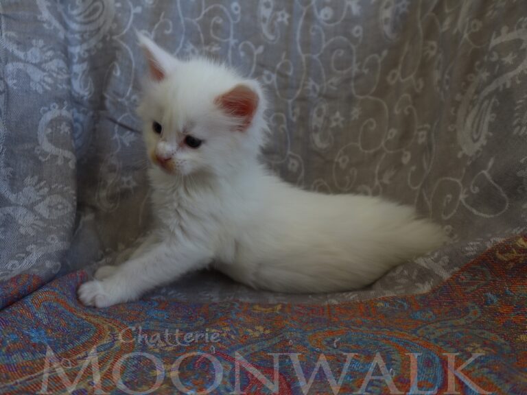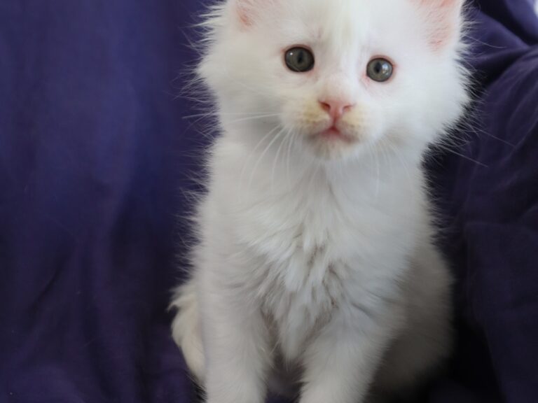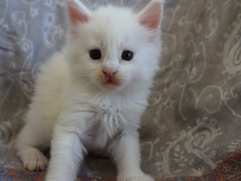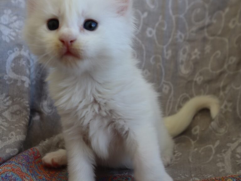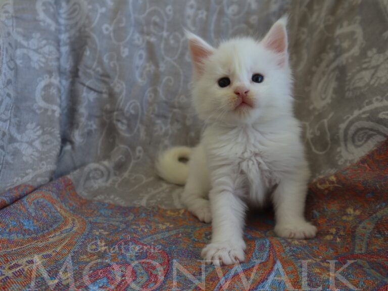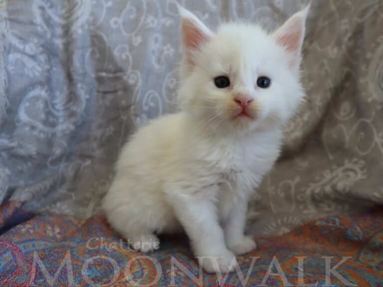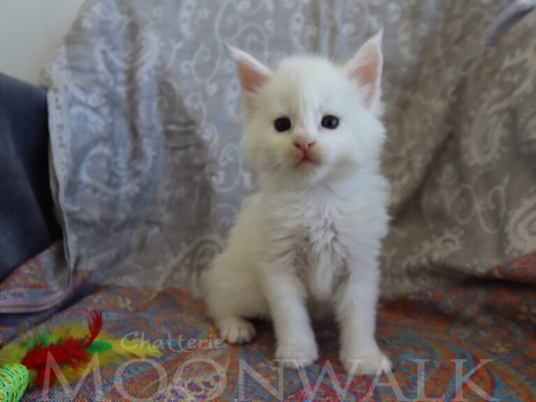 Mâle maine coon blanc yeux or à vert