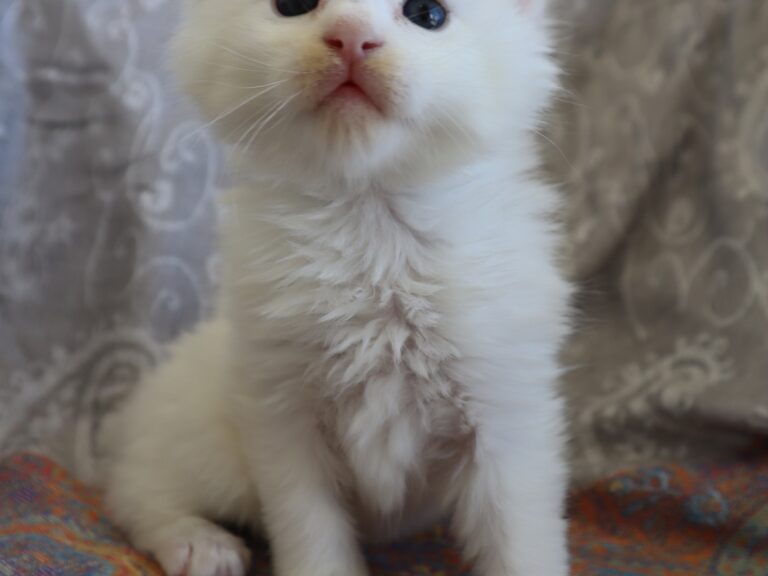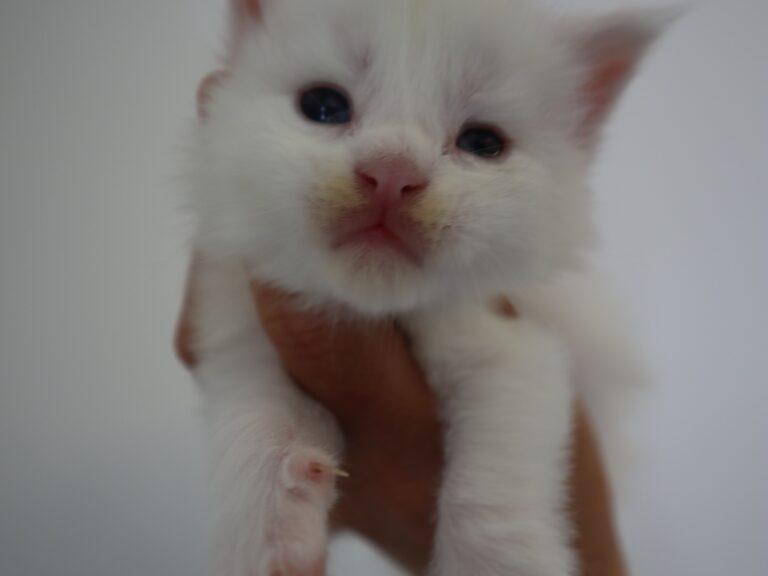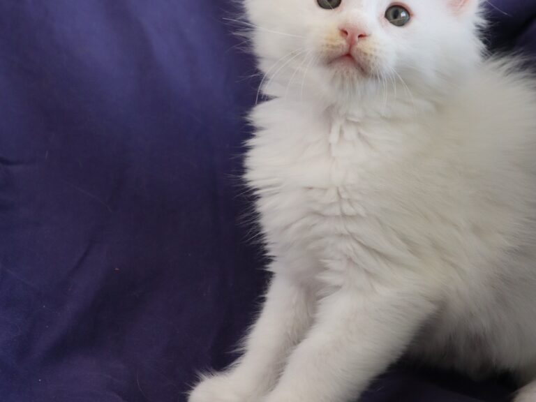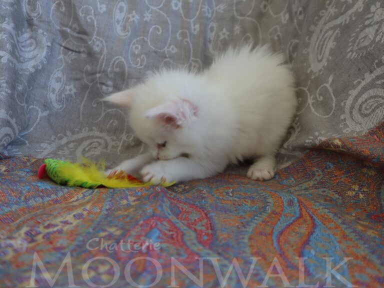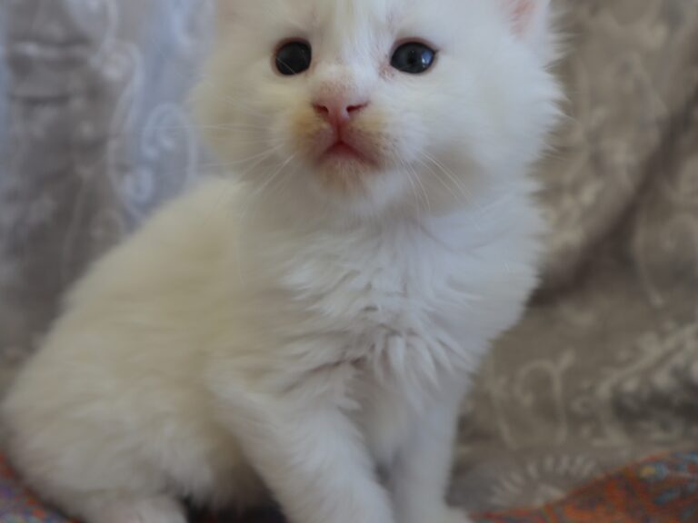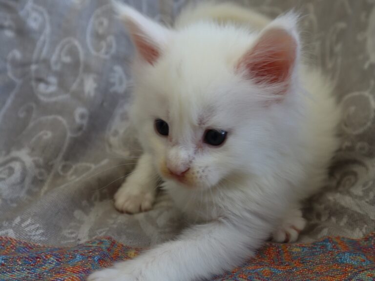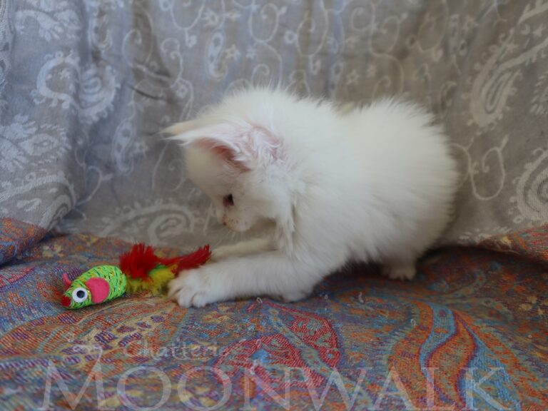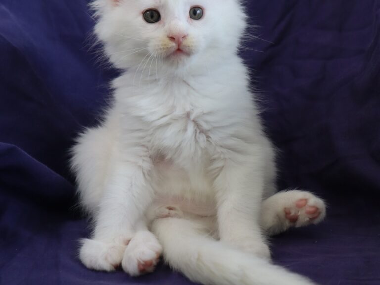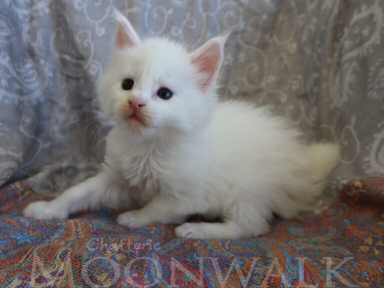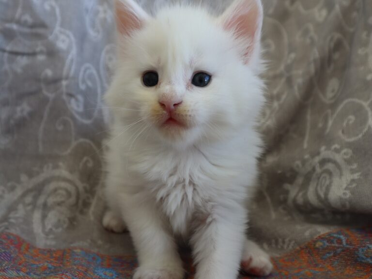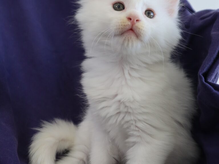 Mâle maine coon blanc yeux or à vert