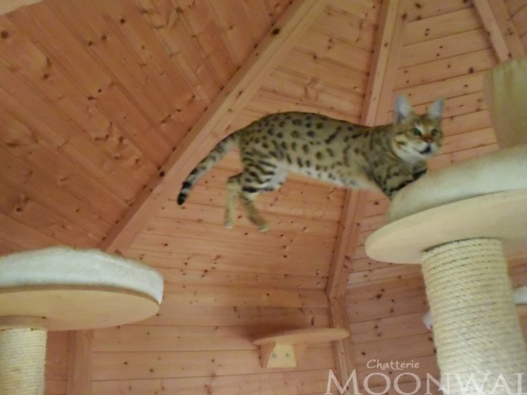 Querida est Une jeune chatte tellement sympathique qu'on en oublierait sa génération proche du serval. Je suis extrêmement surprise au quotidien de sa gentillesse.