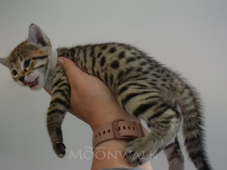 La jeune Saoulana est disponible à l'adoption. Sawa pour les intimes est la sœur du grandiose Sherkan. Elle aurait donner naissance à des F5 domestiques au gabarit XXL. Nous la plaçons car nous diminuons le Savannah.